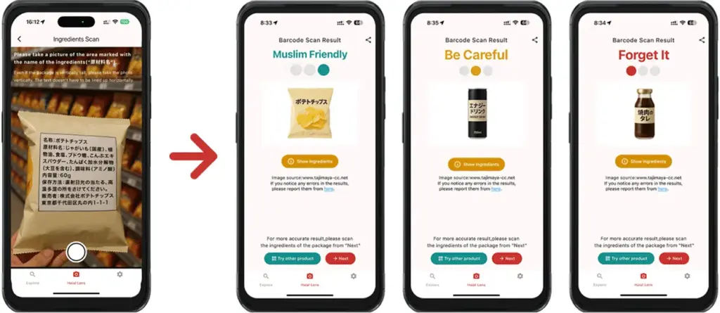 バーコードや成分表示をスマホで読み取るだけで、食品のハラール性をその場で判定。